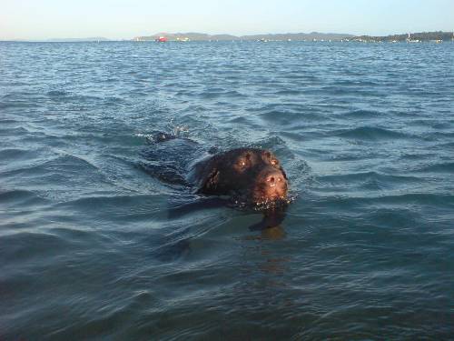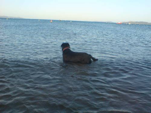 ben vi les chiens ils ont pas le droit de se baigner sinon !